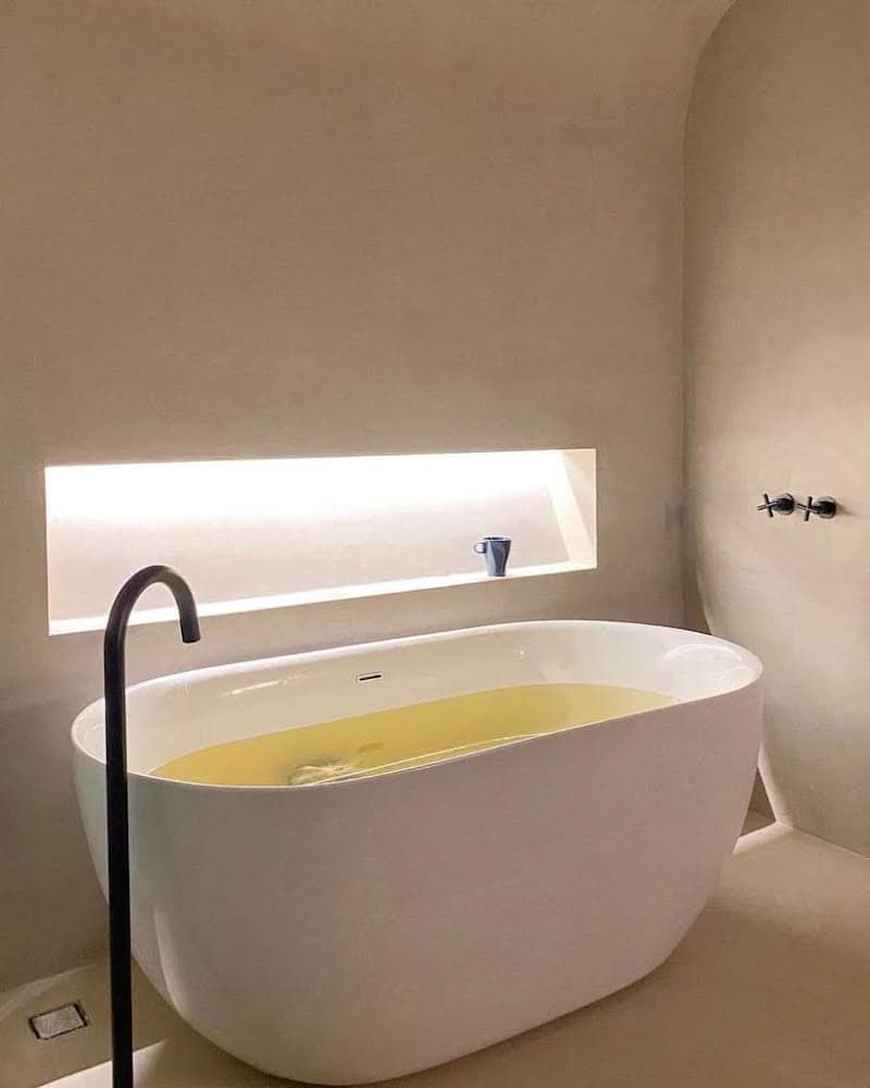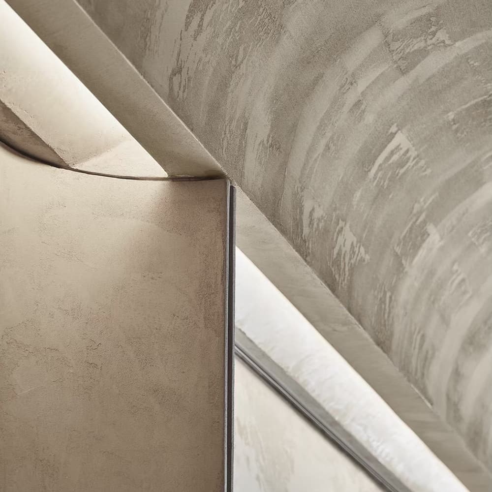タットは,マイクロファイバーを配合したことにより,今までの左官材には無かったサテンやベルベットの様な滑らかな手触りが表現できるピュアライムです.数度の磨き作業で手触りの良い低光沢に仕上げることも可能です.ナチュラルワックスやメタルワックスを併用することで,更に意匠性や機能性が向上します.
