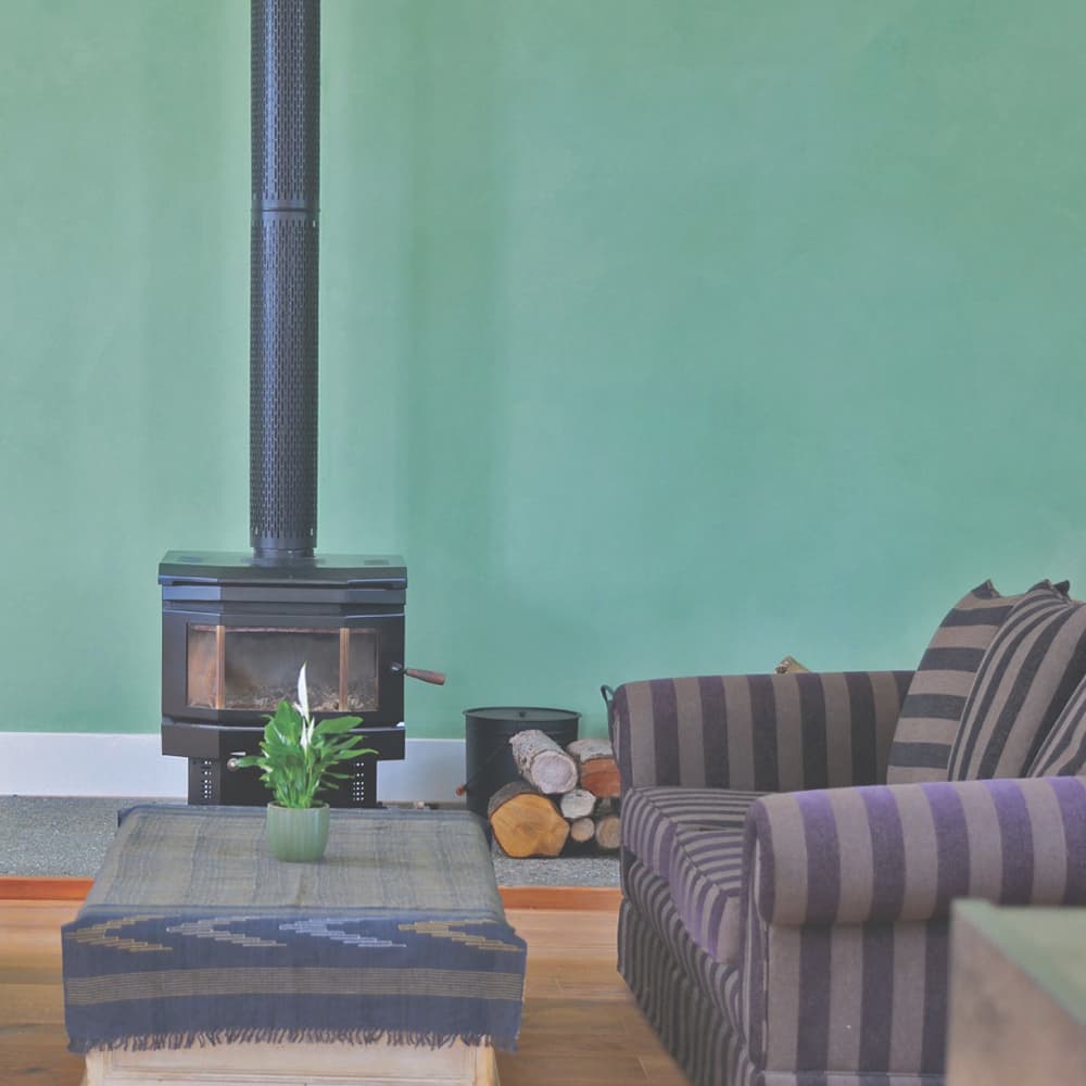 イスペーグは,2度,3度と塗り重ねることで鏝跡がくっきりと表れ,濃淡のある奥行きを感じる仕上がりになるピュアライムです.骨材を含まないペースト状のため,鏝磨きを行うことで鏡面的に仕上がり,凹凸のない光沢のある美しい表情になります.一般的な西洋漆喰に比べ,発色が良く,磨き作業が格段に容易なことも特徴です.ナチュラルワックスを併用することで,更に意匠性や機能性が向上します.