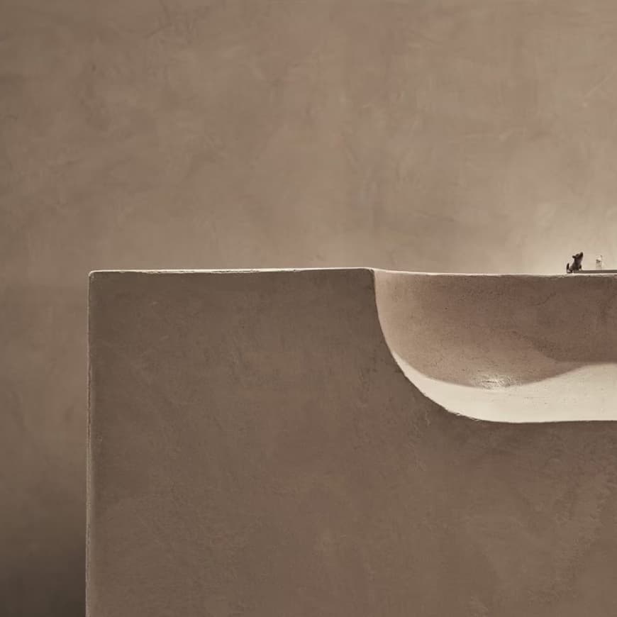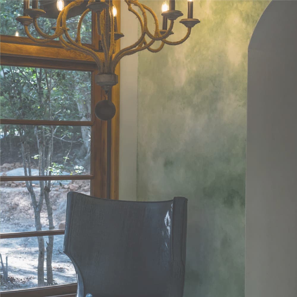 INCANT(インカント)は,粒の大きな高品質なピュアライムにファイバーを配合することで,最大5mmまでの凹凸のある塗り付けを可能とした内装用塗り壁材です.砂岩調や,ステンシルを使った造形など,立体的で存在感のある表現を施すことができます.