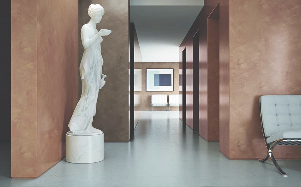 イタリア漆喰「Decora(デコラ)」は,ヨーロッパ材の質の良さをアジアの気候向けに改良を加え,日本の漆喰や顔料での表現とは異なる発色や光沢の演出,イタリア磨き,モルタル調仕上げ,エイジング仕上げなどデザイン性に優れた施工を提供します.