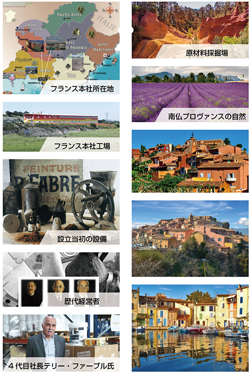 現在の社長テリー・ファーブル氏は4代目,自然素材を使用するその精神は今も貫かれ,創業以来,優れた品質とカラーセンスで賞嘆を集めています,ヨーロッパを始め,米国,中近東,ロシア,日本に販売拠点を持ち,世界中で愛用される明るく美しいカラーと自然な風合,南仏プロヴァンス地方の天然素材を使用した安全性も,高く評価されています,