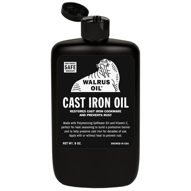 鋳鉄製の鍋やフライパンは、これまでで最も耐久性のある調理器具のひとつです。適切な手入れをすれば、何世代にもわたって使い続けられ、酷使され、受け継がれていきます。また、アンティークショップで見つけた鋳鉄は、簡単に修復して毎日使うことができ、経済的で環境にも配慮した製品です。キャストアイロンオイルは、重合紅花油と植物由来のビタミンEという2つのシンプルな成分で作られています。この特定の種類の紅花油は、高い煙点、薄い粘性により金属に浸透しやすく、オーブンの熱以外で使用しても、時間をかけて耐久性のあるコーティングを形成する能力があり、鋳鉄シーズニングにとって最も理想的な油と言えます。この紅花油ほど煙点の高い重合油は他にありません。塗布は簡単で、鋳鉄を洗って乾燥させた後、すべての表面に薄く塗るだけです。錆びを防ぎ、使い込むうちに表面を強化します。キャストアイロンオイルは紅花油を重合させて作られています。熱を加えなくても鋳鉄に硬化できるため、極端な熱や長時間の焼き時間なしで鋳鉄をシーズニングできます。ほとんどの場合、キャストアイロンオイルで鋳鉄をシーズニングするには、1 時間以内、摂氏232 度以下で完了します。